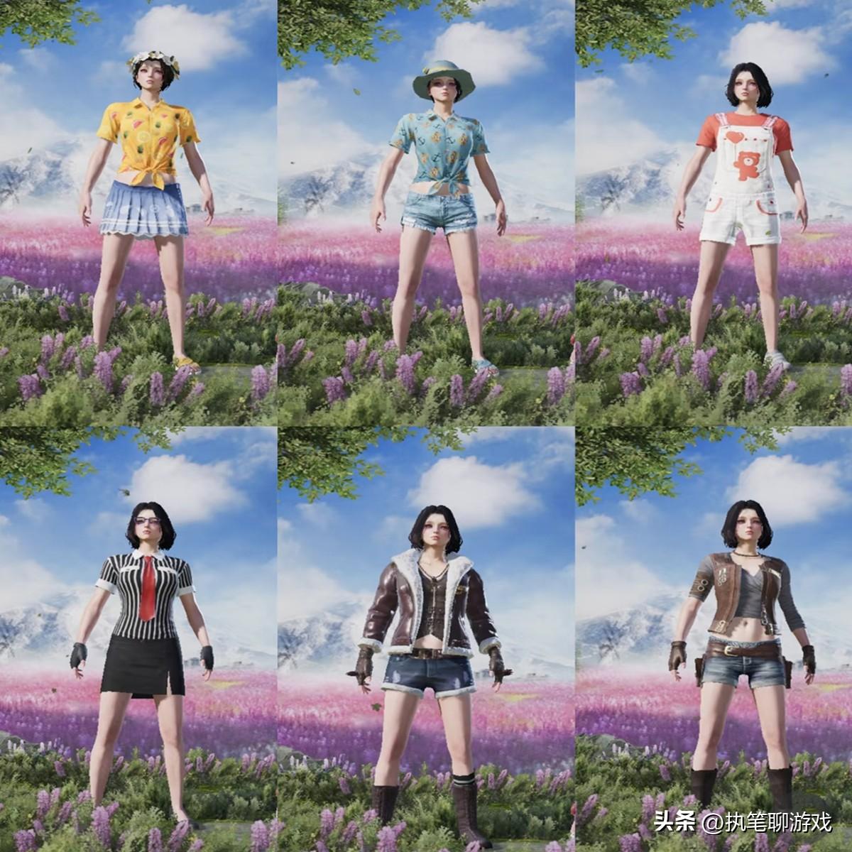 我們接下來看第二組,同樣是給人的感覺似曾相識,卻完全叫不出所有衣服的名字,只是記得第二排C位的迷彩服,應該是來自很久之前的一次任務,當時的《和平精英》玩家們還比較喜歡迷彩服。