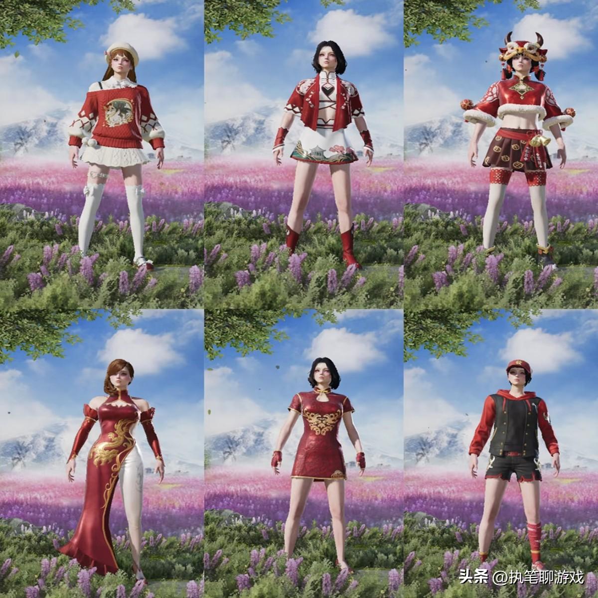 這一組看起來就相當喜慶了,其中的“牛氣沖天”屬於比較早期的春節版套裝,而左一的旗袍是前不久纔出現的,當時還得到了不少玩家的誇讚。