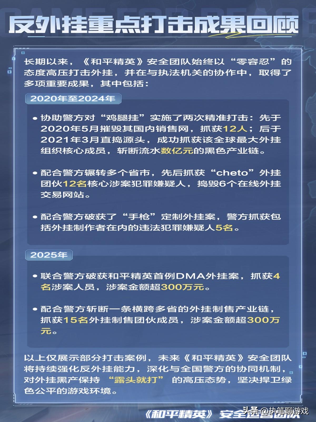 與此同時,《和平精英》還總結了近年來的關於“科技力量”的打擊成功回顧,比如2020年到2024年間,雞腿、Cheto、手槍等知名的“科技力量”;2025年的DMA以及橫跨多省的產業鏈等。