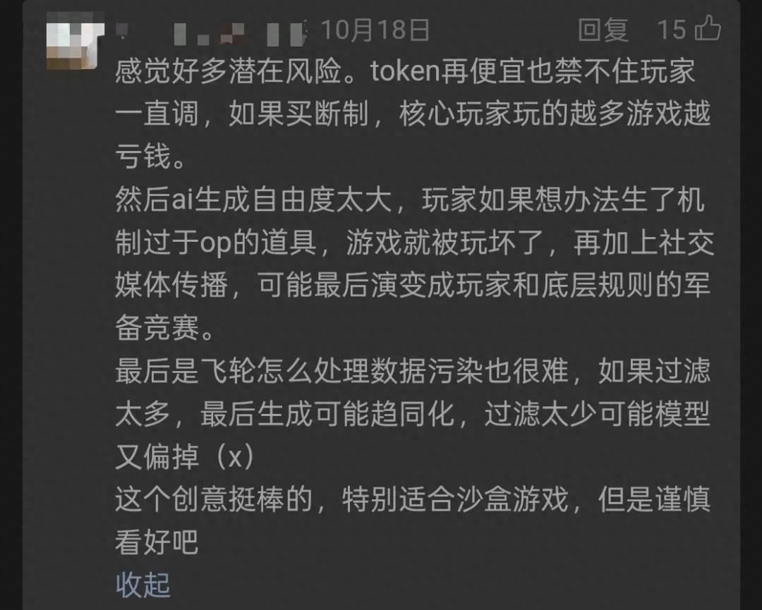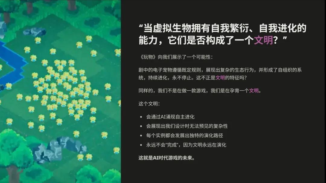 但我們的優勢在於,能拿出一個清晰的、以「好玩」爲基礎的沙盒遊戲循環,讓AI真正具備了「生成玩法規則」的能力,而不僅僅是生成對話,不只是一個噱頭。加上團隊的落地能力,最終還是找到了認可我們的投資方。