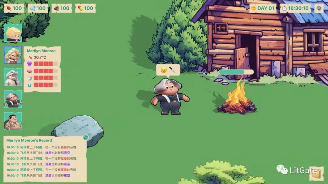 張昊陽:這個項目的雛形,可以追溯到我們在騰訊做的《伊甸島》。當時斯坦福AI小鎮的論文剛出來,我們馬上以此爲基礎,做了一個可交互版本,驗證了大模型驅動NPC玩法的可行性。