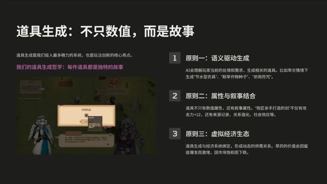 比如NPC可能會突然告訴你,他夢到了「一把遊戲中不存在的傳奇武器」,然後實時生成了這把武器的功能、外觀和製作配方——這種由AI驅動的動態規則生成,保證了遊戲長期的可玩性和驚喜感。
