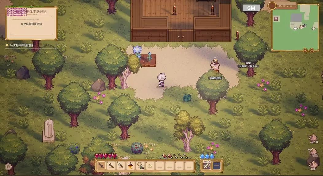 目前《麥琪的花園》的產品形態,是一款像素風沙盒遊戲:玩家可以用AI捏NPC,與其交互,並完成探索、建設、互動的體驗循環。隨着玩家與NPC的互動深入,系統會爲NPC生成專屬支線任務,並且有概率生成遊戲原本不存在的功能性道具和玩法規則。