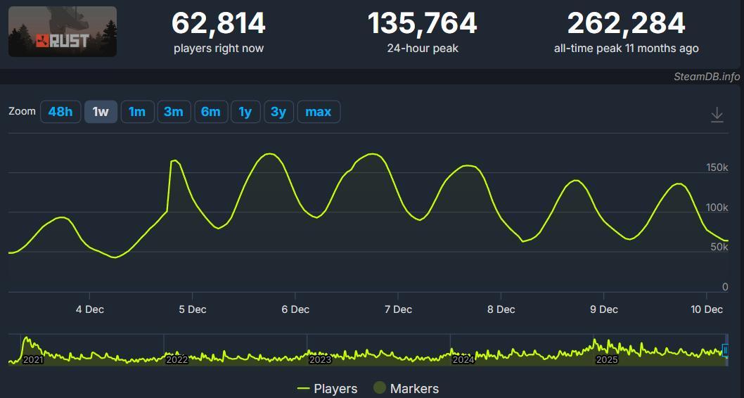 就是這款2013年就開啓EA的老遊戲,歷經12年還保持着驚人的生命力。遊戲在Steam銷量超過2000萬份,就在今年初,其同時在線人數峯值還一度衝破26萬大關。