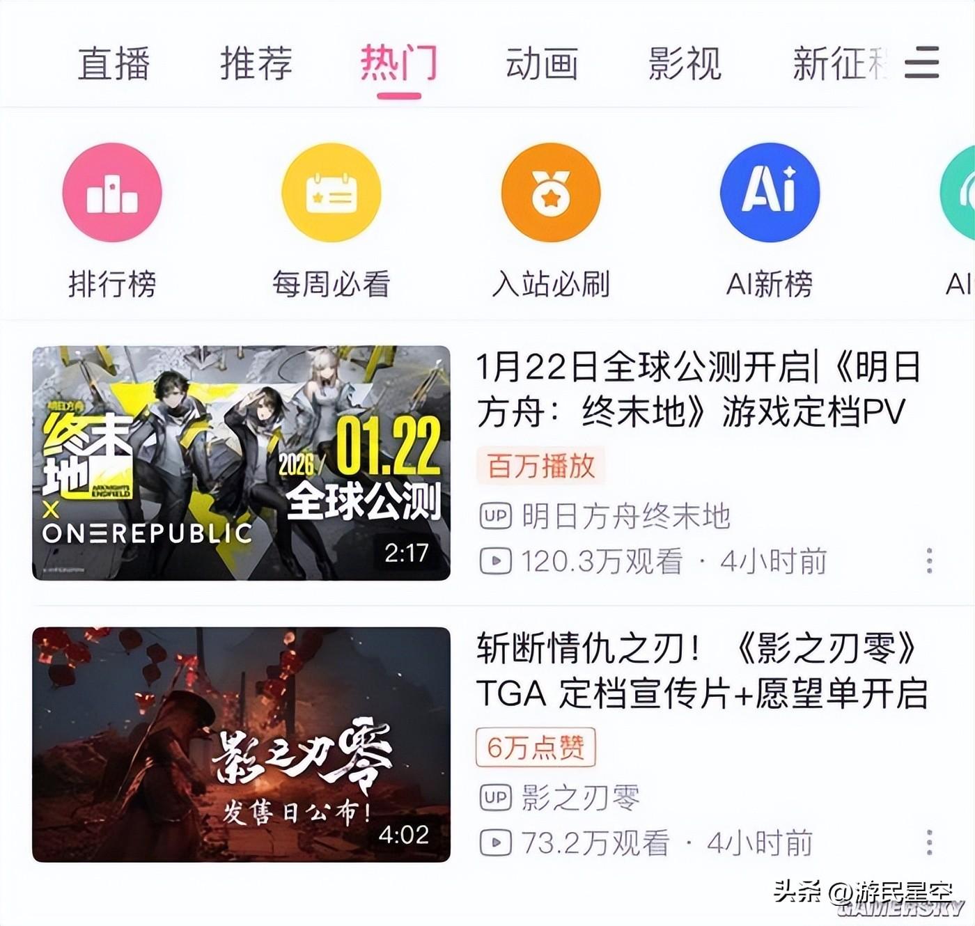 現在一打開b站,熱門直接掛着倆TGA的國產遊戲。