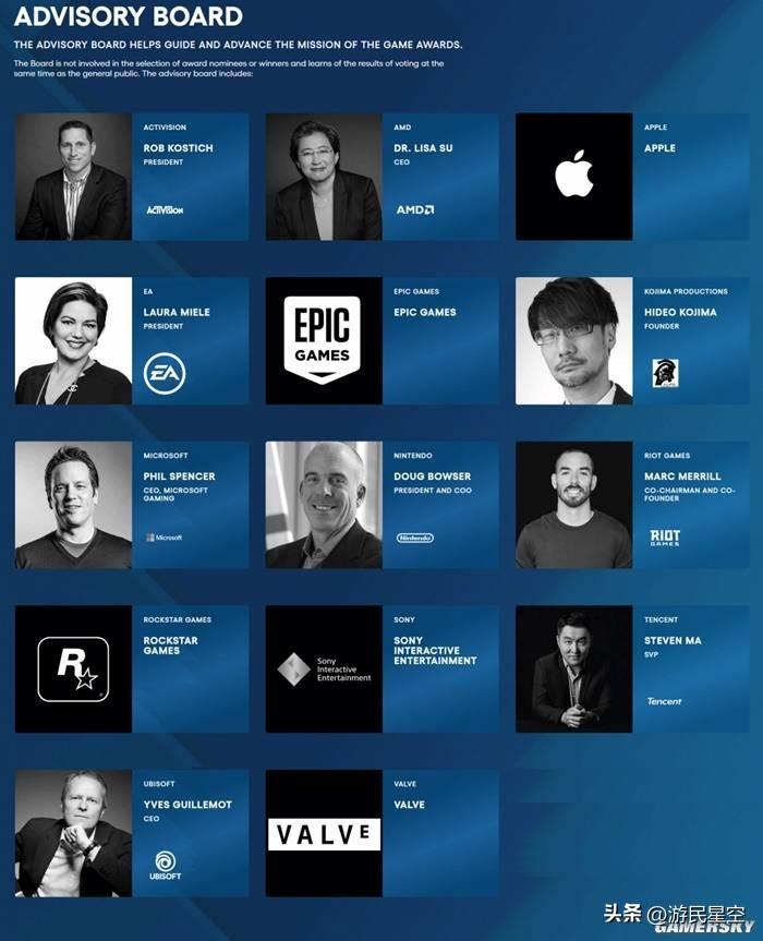 就拿顧問委員會來說,截至目前,這個顧問委員會目前總共有14家,其背後都是主流遊戲平臺或大型遊戲公司,比如代表着“御三家”索尼微軟任天堂,以及EA、育碧、V社等我們熟知的遊戲巨頭——值得一提的是,騰訊已經於2018年加入了這個委員會,而最近加入這個委員會的,是代表着移動端平臺生態的蘋果。