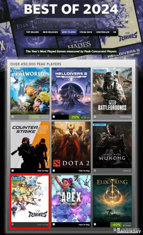 遊戲的在線峯值人數不斷刷新,每天數十萬人在遊戲中激戰,讓其穩坐Steam在線人數榜前三的交椅。並且隨着熱度不斷膨脹,越來越多的玩家湧入遊戲中,《漫威爭鋒》的驚人表現,讓其在發售不到20天后,以同時在線人數超45萬的矚目成績,位列“Steam年度最熱玩遊戲鉑金榜”。