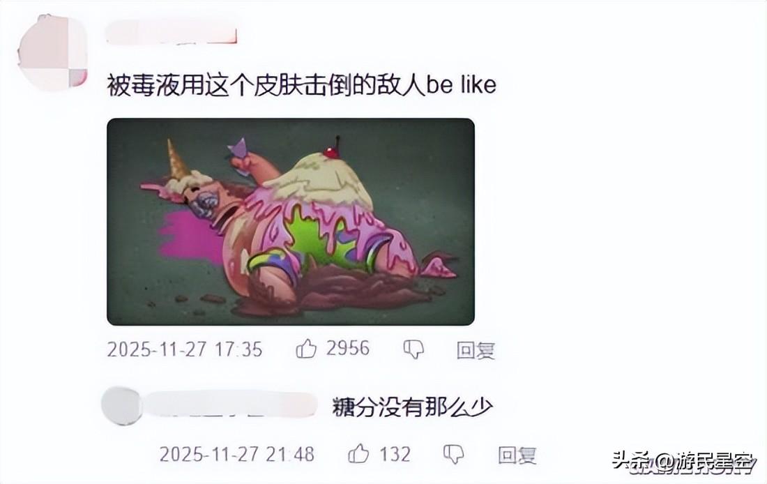 最近大火的毒液皮膚“彩虹棒棒糖”就是很好的例子,少女系的配色,加上各種糖果與毒液本身的反差,讓一衆玩家直呼遭不住,想一鍵查詢策劃的精神狀態。和皮膚相關的梗也是玩的飛起,讓這款皮膚在一中玩家的心中,上升到了全新的高度,足以證明其有多成功。