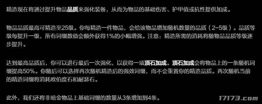 有關這一點,暴雪也是提前考慮到了,新增了一個類似於“強化”的精造玩法,可小幅提升裝備的基礎傷害、護甲與抗性,能拿來人造高數值胚子。