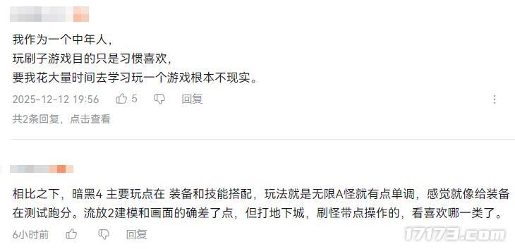 另外,需要提及的是,與《流放之路2》、《惡意不息》這一批往“魂系”加點的暗黑新遊相比,《暗黑4》則走向了另一個極端,即簡單粗暴到按摩大腦的爽刷。