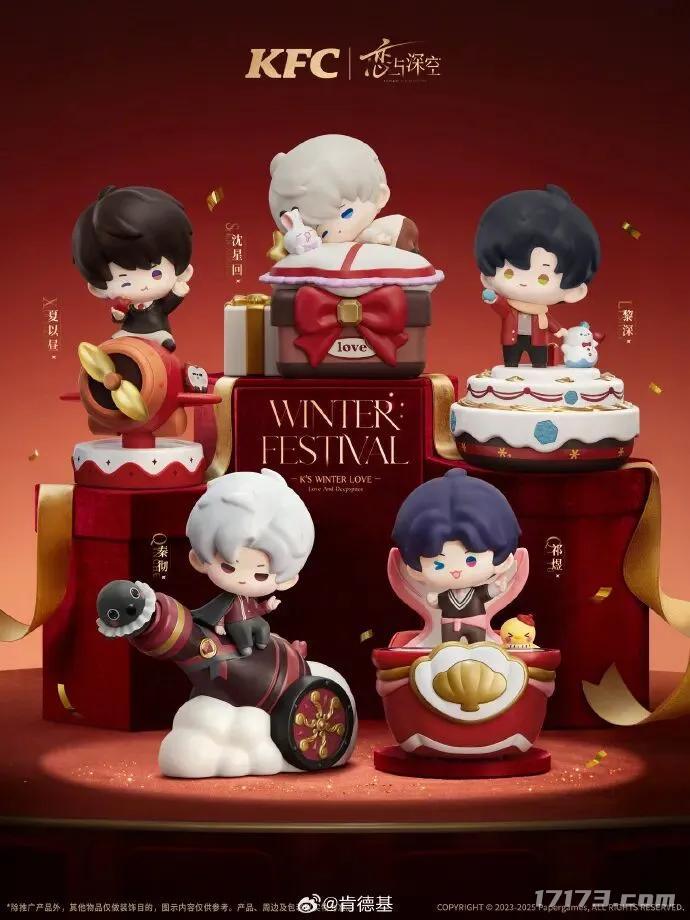 疊紙遊戲《戀與深空》與肯德基的聯動活動“暖冬慶典”定於12月19日正式啓動。本次聯動將推出五款男主主題玩具,設計融合禮物盒、旋轉臺、舞臺等互動形式。