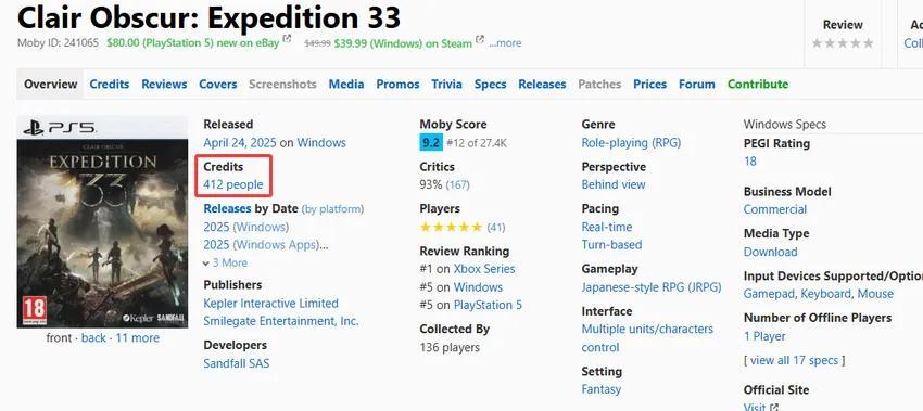 當然,這聽起來不夠體面,不少人覺得遊戲拿33人開發作爲宣傳,簡直是不把外包當人。但在歐美3A敘事熱度普遍退潮的當下,這確是一種生存之道。