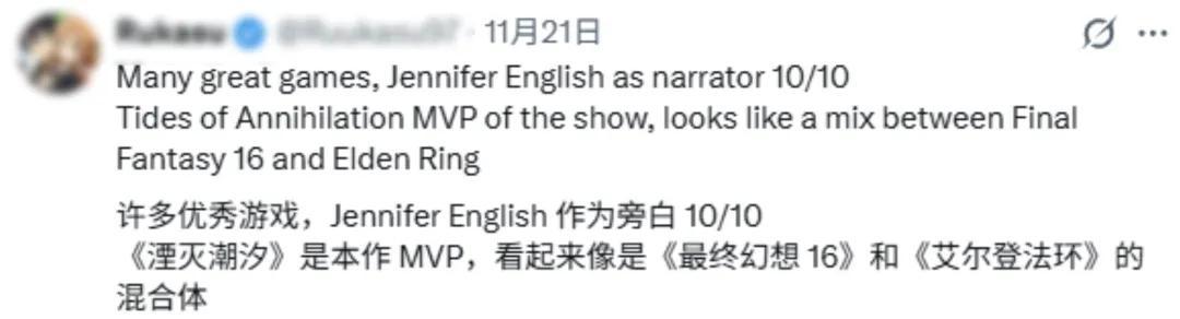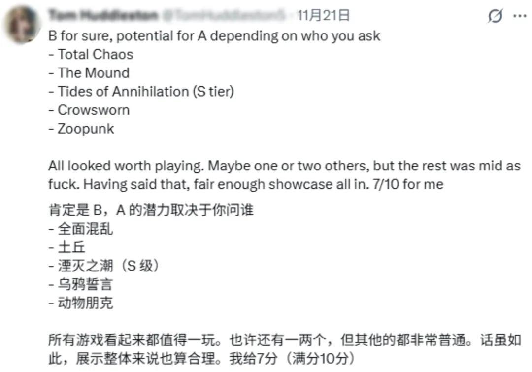 而兩款國產遊戲反而成了發佈會的亮點之一,《動物朋克》因獨特的美術風格和動物題材被屢屢提及,《湮滅之潮》則被評論區裏的不少海外玩家視爲整場發佈會裏的唯一MVP。