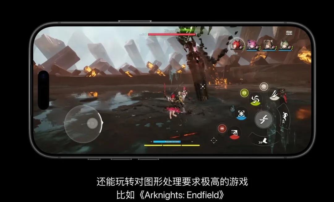 而在一年一度號稱科技春晚的蘋果秋季新品發佈會上,《明日方舟:終末地》則成了iPhone17 Pro新機性能,以及A19 PRO芯片威力的最佳演示案例。