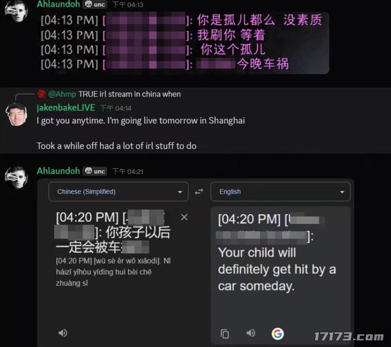 而這就導致了有人去私聊,跑去詛咒Ahlaundoh“今晚車禍”,反被他給當成了直播的節目效果,開始帶中國玩家素質差的節奏。