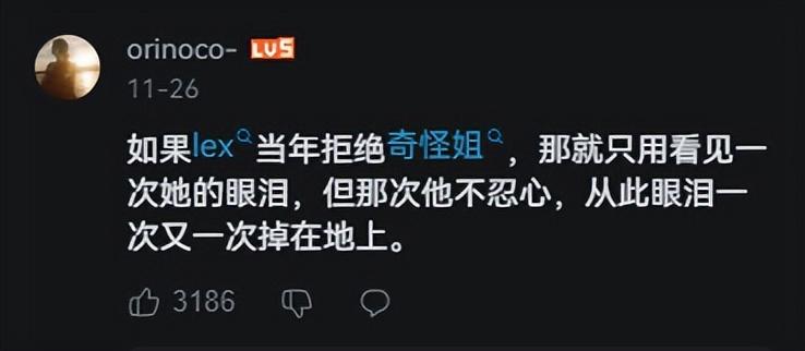 縱觀近幾年,從《甄嬛傳》安陵容對甄嬛那句“說到底,我還是最怨恨你”致使鳥嬛CP的異軍突起;到綜藝《再見愛人》的熱播;再到最近這段時間Lex和奇怪這對“對抗路情侶”的莫名翻紅。