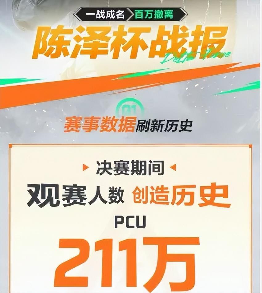 它的形式很靈活。例如最近搜打撤模式的主播比賽“陳澤杯”就收穫了極高的熱度,這場非官方的娛樂賽事,刷新了抖音歷史上含亞運會在內的所有遊戲賽事數據,創造了PCU211萬的同時在線觀看新高。