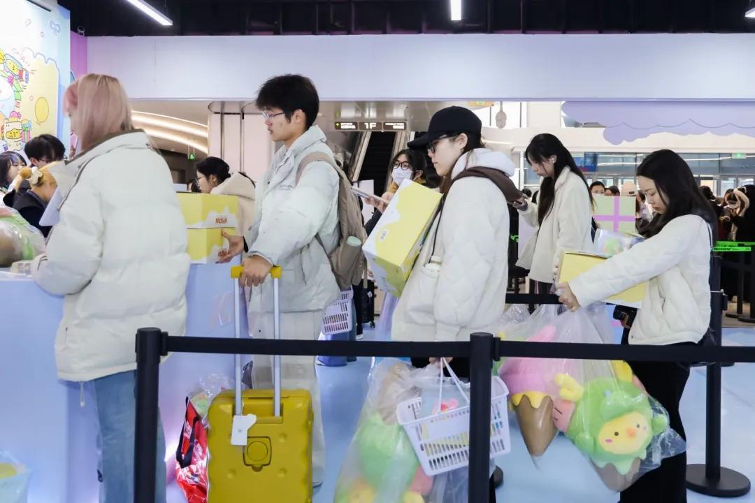 當然,最打動人的還是氛圍。粉絲、店員和空降的選手打成一片:店員幫粉絲搖盲盒、挑印章,粉絲也會反過來給忙碌的店員買水。在這裏,比起單純的做買賣或搞活動,大家更像是在尋找同好,赴一場期待已久的線下面基。