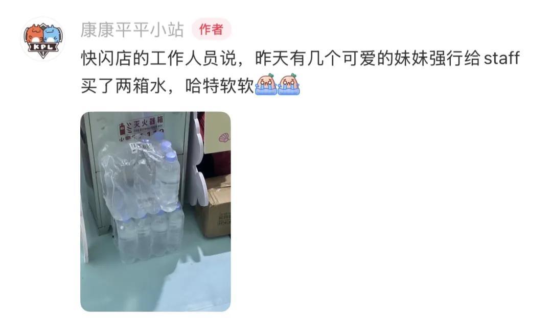 反過來,粉絲也心疼工作人員。有人看staff太辛苦,硬是給塞了兩箱水。這件事後來還被官方情報站曬了出來;