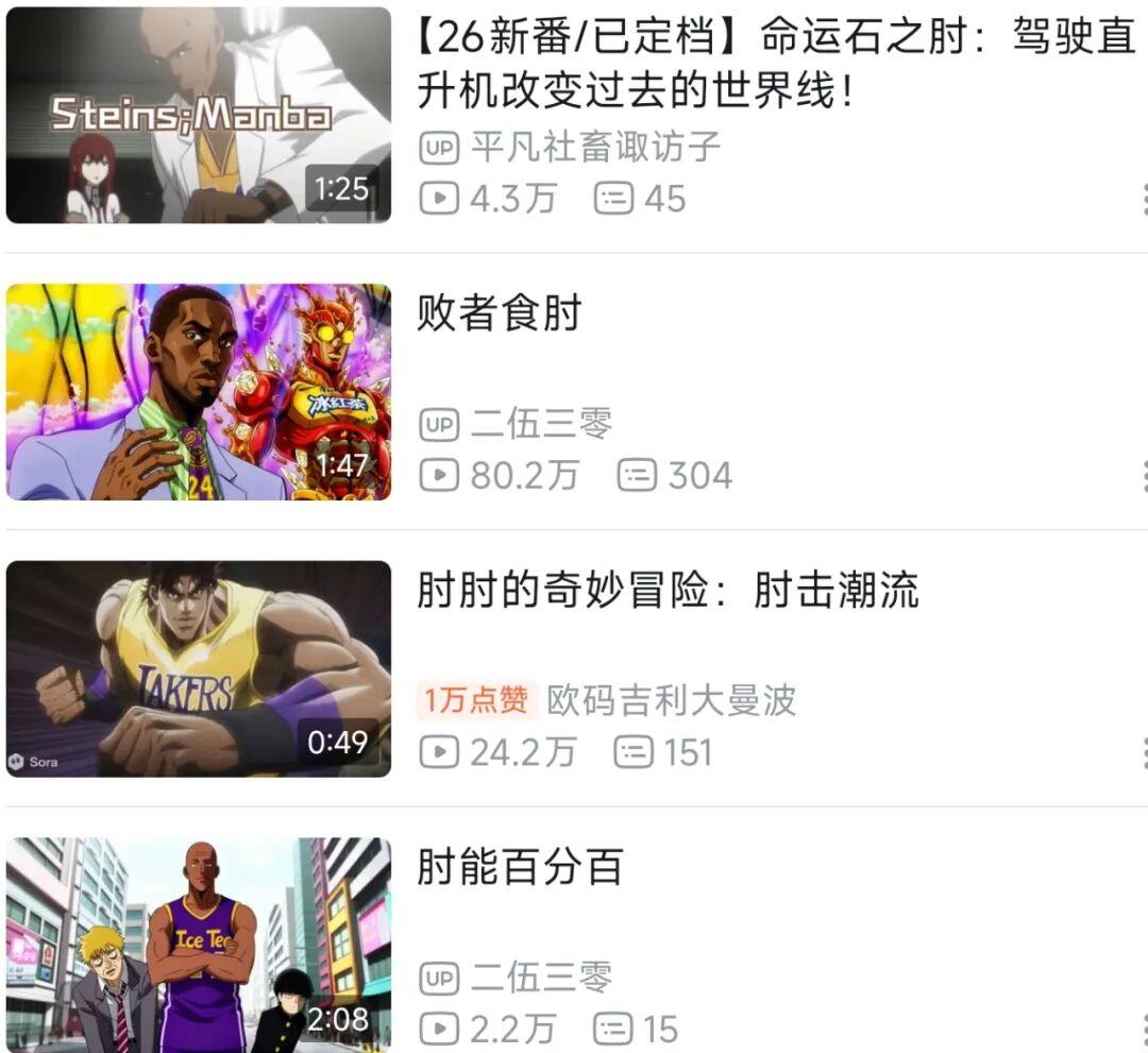 但當曼巴精神開始大規模注入二次元,奇怪的事情還是發生了。2025年的十月動漫新番,無論是《肘肘的奇妙冒險》《天氣之肘》《肘擊的巨人》《肘術回戰》《新世紀曼巴戰士》《命運·曼巴之夜》《一肘超人》《精靈肘可夢》《賽博朋科:邊緣行肘》……全都是同一個主演。