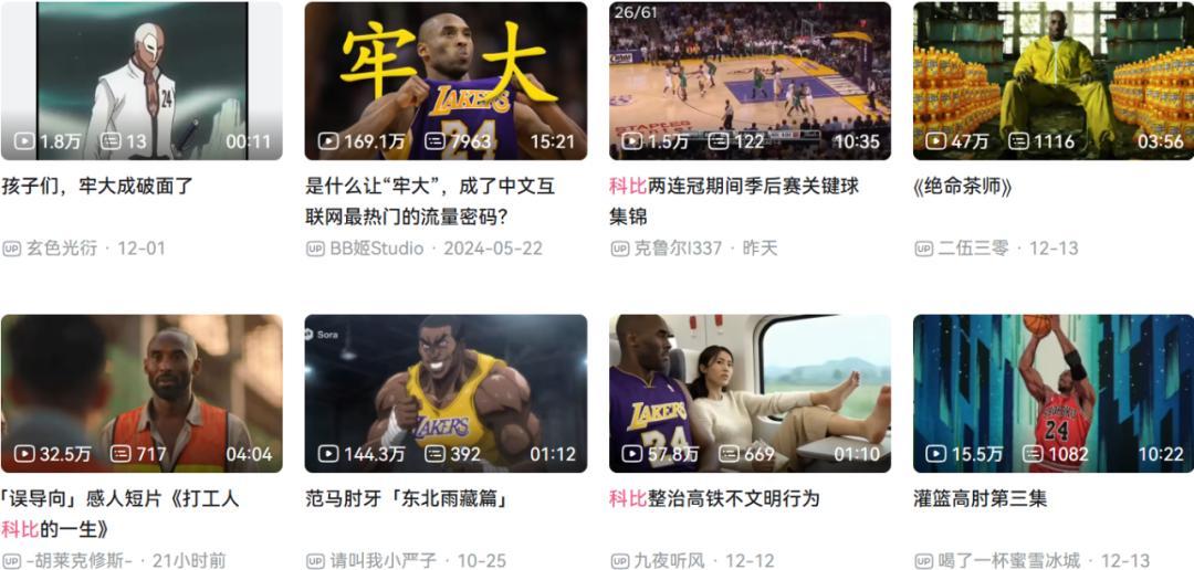 可能你注意到了,和過去以負面、侮辱性質爲主的“牢大”梗截然不同。在如今的這些AI視頻裏,科比幾乎不再以負面形象出鏡。他不是下地獄的小丑,而是被請上神壇的判官;不是地獄笑話的素材,而是執行人間正義的概念神。