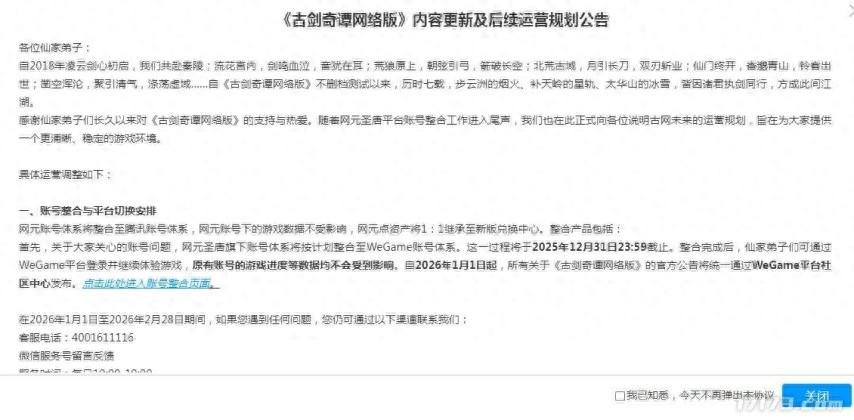 還有需要注意的是,網元聖唐的賬號合併至騰訊的WeGame賬號體系,2025年12月31日是最後的截止日期。