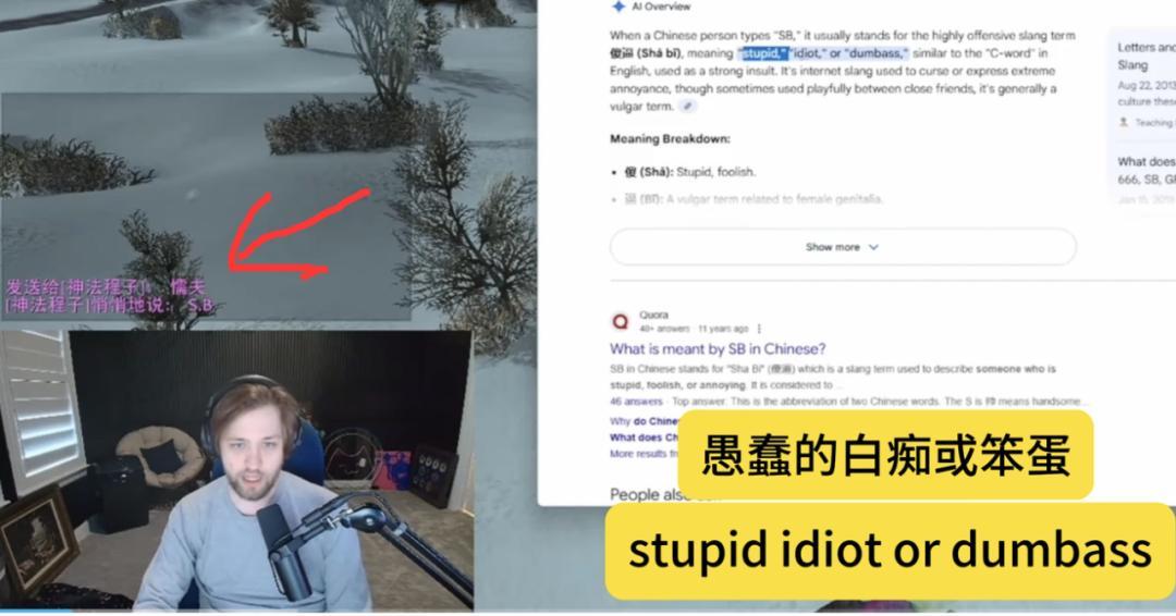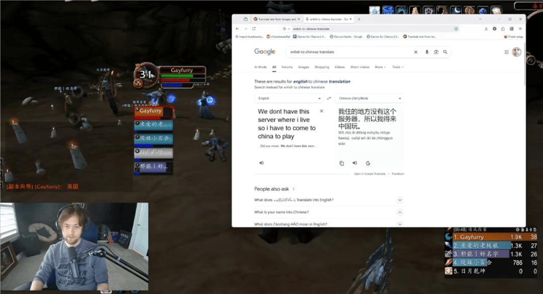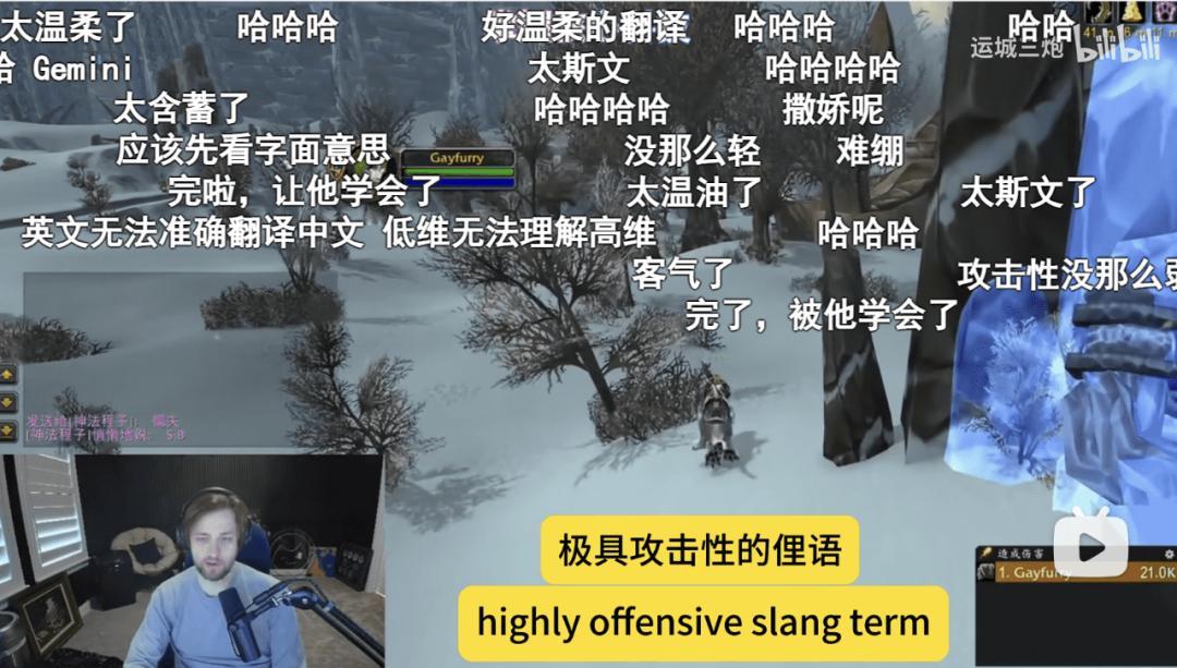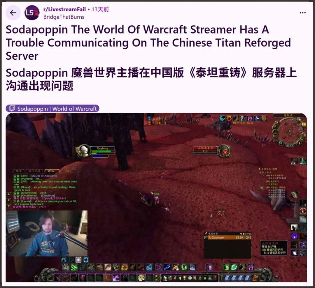 像Sodapoppin這樣的大主播突然開始自發組團,來國服中文客戶端的遊戲,並努力學習中文。結果因爲文化差異,鬧出了不少笑話。