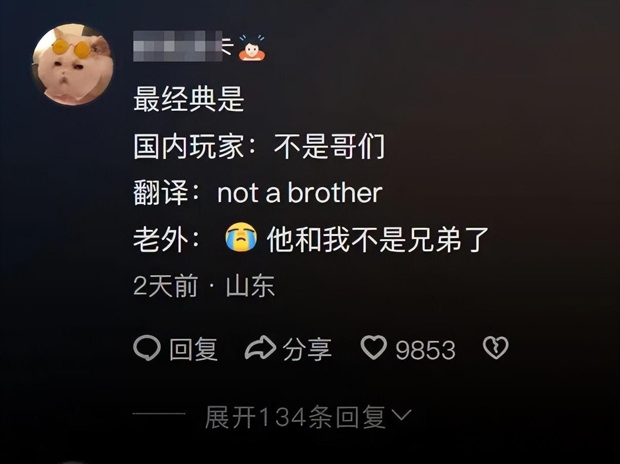 後來他拉怪過多倒T,被大家投票踢出了隊伍。這哥們兒回去琢磨了半天,愣是沒想明白這句 “Not a Brother” 的意思。