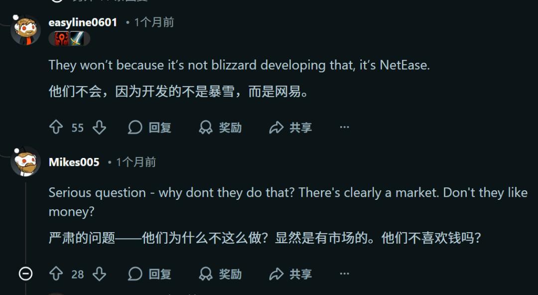就像爲什麼老外們會對時光服情有獨鍾呢?——不論國內國外,其實都有衆多60-80級經典三部曲的忠實粉絲,奈何暴雪自己不爭氣,有錢都不會賺。