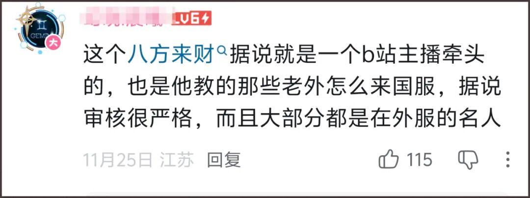 開服那一天,他們直播排隊四五個小時,興沖沖在時光服2區的聯盟創建了角色,後來還建立了一個公會叫“八方來財”。