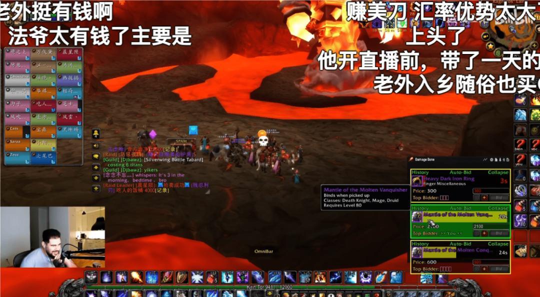 那天凌晨3點(北京時間),Ziqo爲跟團裏另一個法師競價極品裝備,直接殺紅了眼。正好他之前帶人升級掙了不少金幣,這下真是“掙美元/歐元在中國花”了。