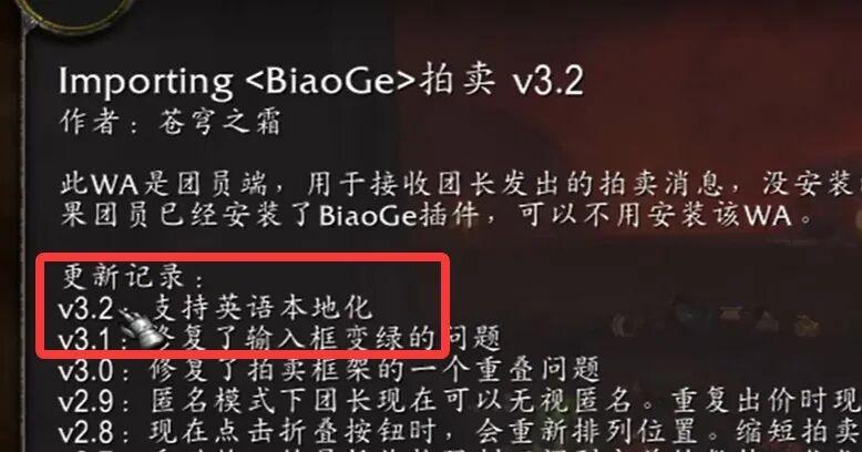 一些國服插件也緊跟時事推出英文版,比如BiaoGe(表格)拍賣插件——屬於魔獸國服的底層邏輯,幾乎人人安裝。