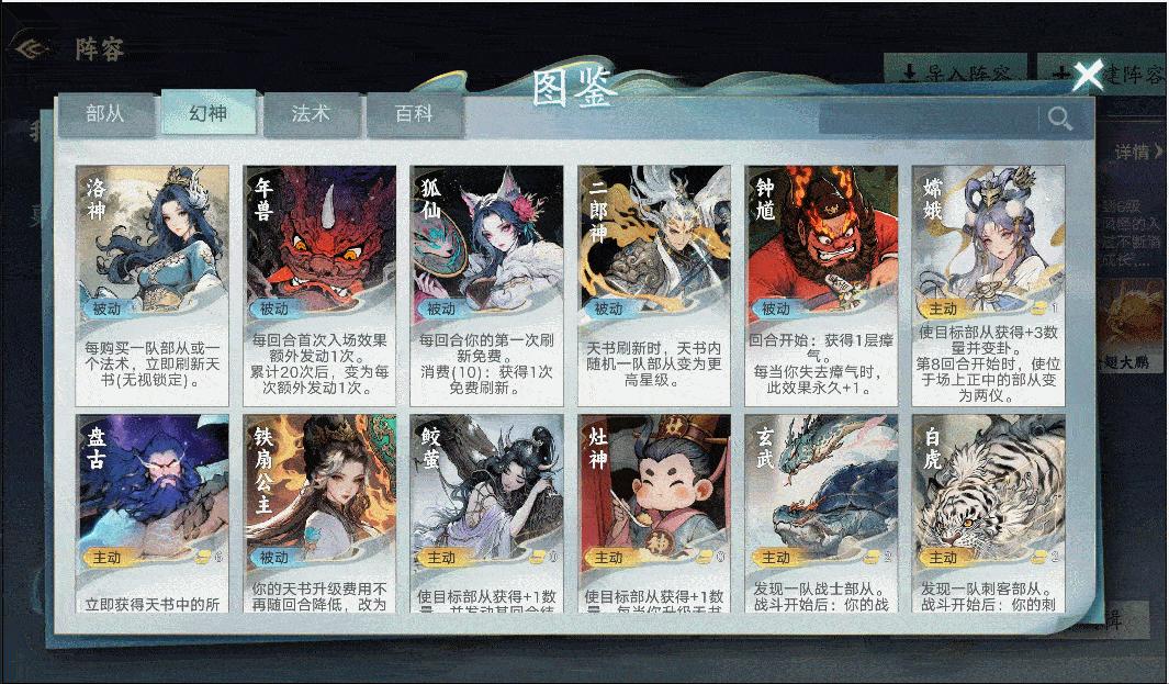 不同幻神具有主、被動及戰場技能的區分:如“旱魃”側重經濟特化;“儺神”則簡單粗暴地提供數值加成;而“神農”則通過“三連”機制,主打後期發力;甚至還有“幻神”能夠親自下場,改變戰局......這些有關技能釋放時機、前後期具體目標的側重方向等,都給予了玩家戰局內外更多策略層面的思考空間。