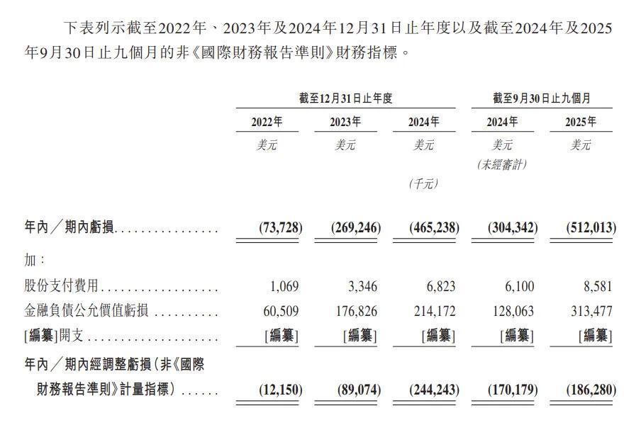 不過在收入暴漲的同時,MiniMax也仍在虧損。在2024年前9個月,公司經調整淨虧損爲1.86億美元(約合13億元)。2025年前九個月,其經調整虧損率爲-348.6%,但較2023年的-2574.4%已大幅收窄,說明盈利路徑有所改善。