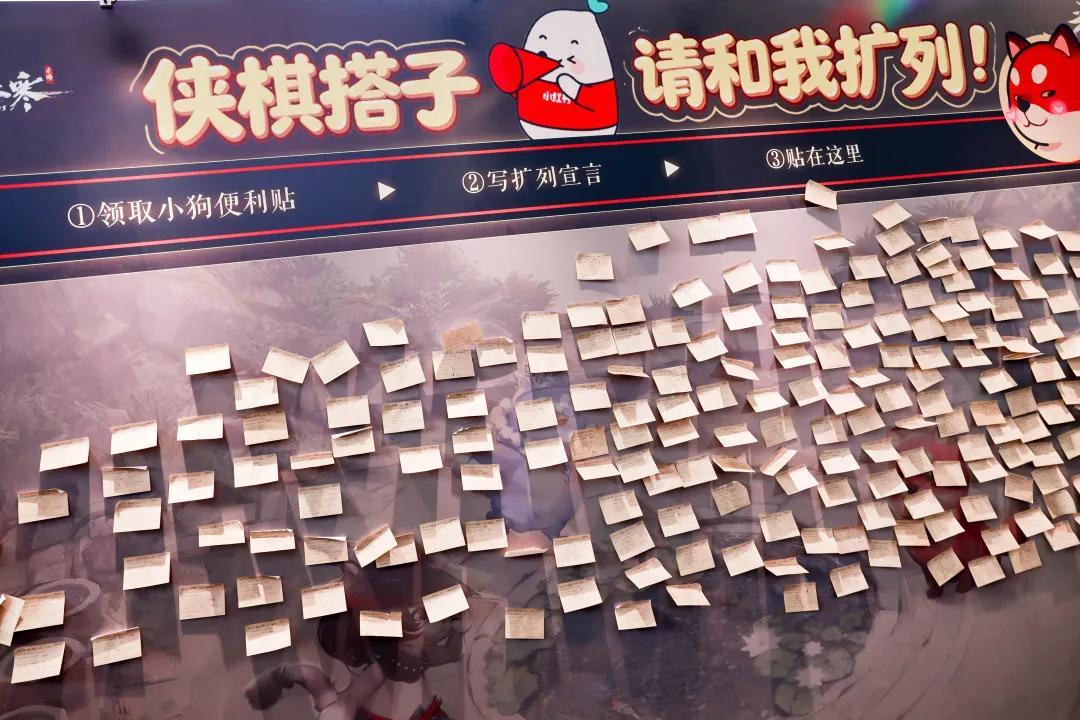 例如擴列貼紙牆,玩家們可以在這裏貼上自己的ID與其他人加好友,很快就被玩家們貼得滿滿當當;還有提供給玩家們的小舞臺,大家可以在這裏和自己的遊戲搭子們合影,很多玩家都圍在這裏,等待着能夠上臺互動。