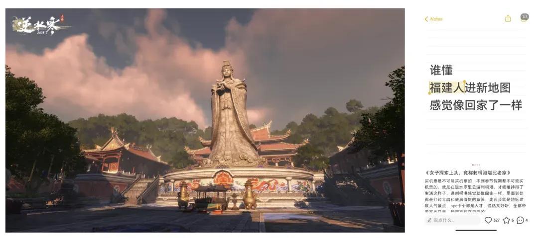 這些非遺民俗文化的還原,都得到了很多玩家的好評。這次週年慶版本更新後,還有福建玩家發帖說,「打開遊戲就像回了老家一樣」。