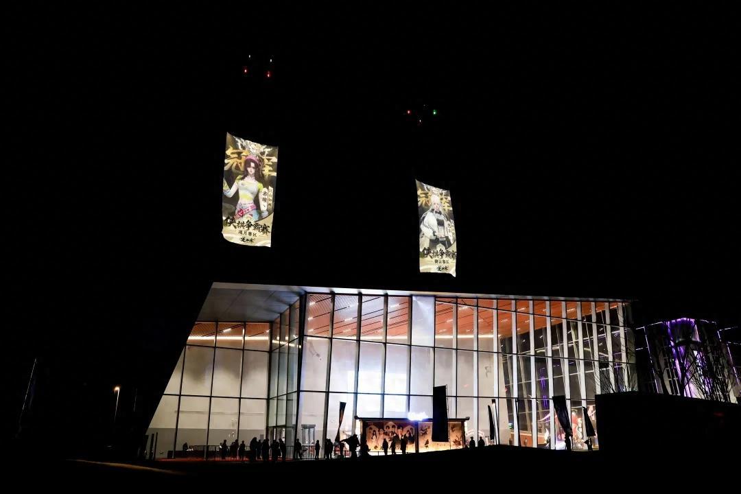 當晚,當冠軍選手誕生時,遊戲官方還出動兩架大型無人機,拉起映着冠軍頭像的巨大屏幕,讓他們直接「上天」。