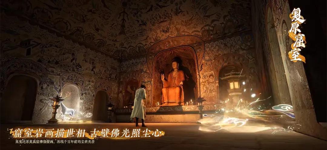 在這個版本中,玩家將會來到敦煌,體驗宋朝年間的邊塞胡漢文化。在敦煌研究院專家的指導下,遊戲不僅會復刻歷史上的邊塞百姓生活、當地的精緻服飾,還會還原失傳多年的胡旋舞,並細緻復原莫高窟的窟室景觀,用現代的方式零距離體驗歷史和文化。