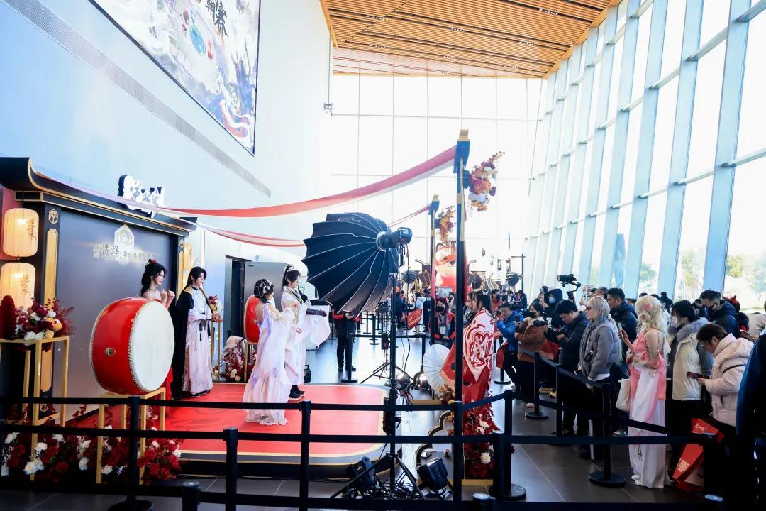 就看活動的外場,在長三角國際電競中心場館大廳,遊戲官方佈置了不少供玩家互動的場地,熱鬧程度簡直就像在辦一場小型廟會。