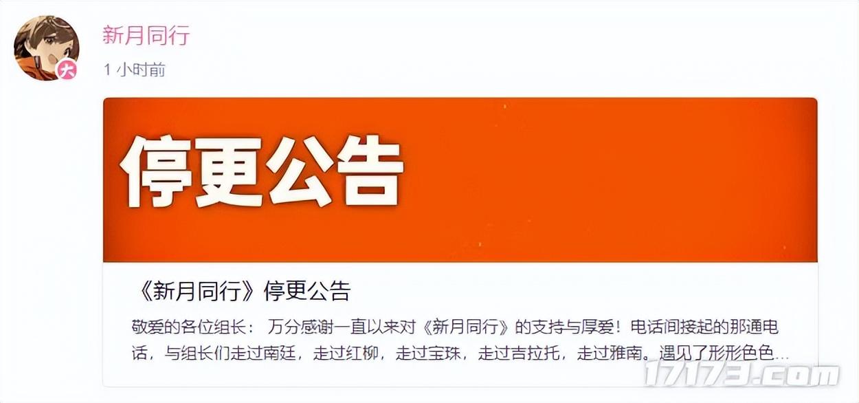 除了我們剛纔提到的《劍靈》,其實上週還有大量的遊戲宣佈停運或停更,此前小有名氣的二遊《新月同行》就是其中一員。