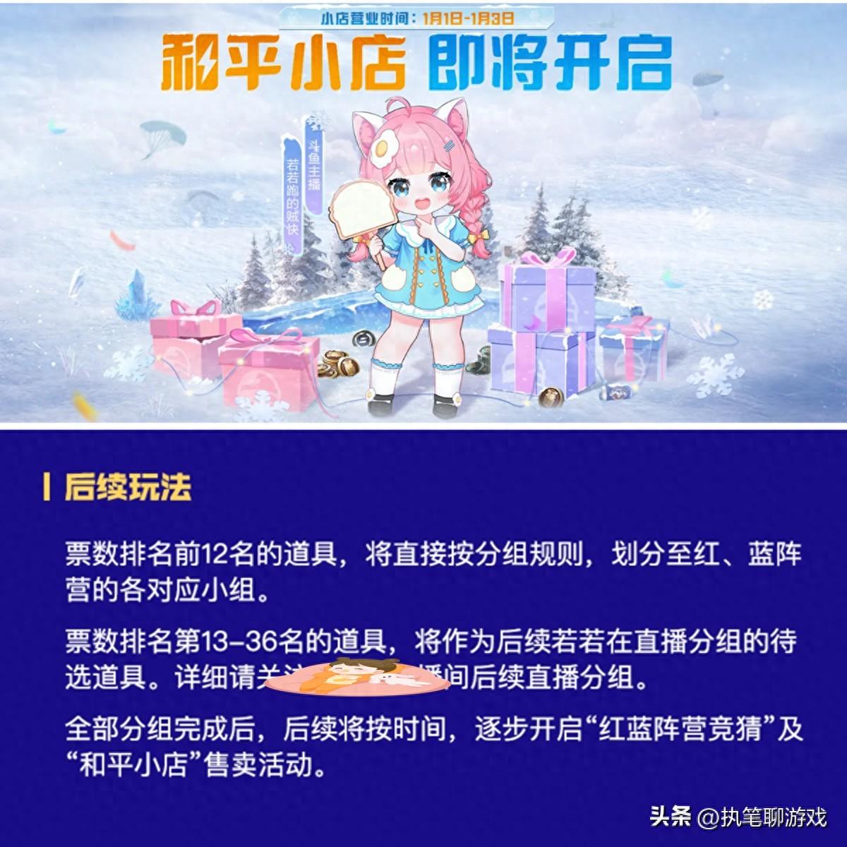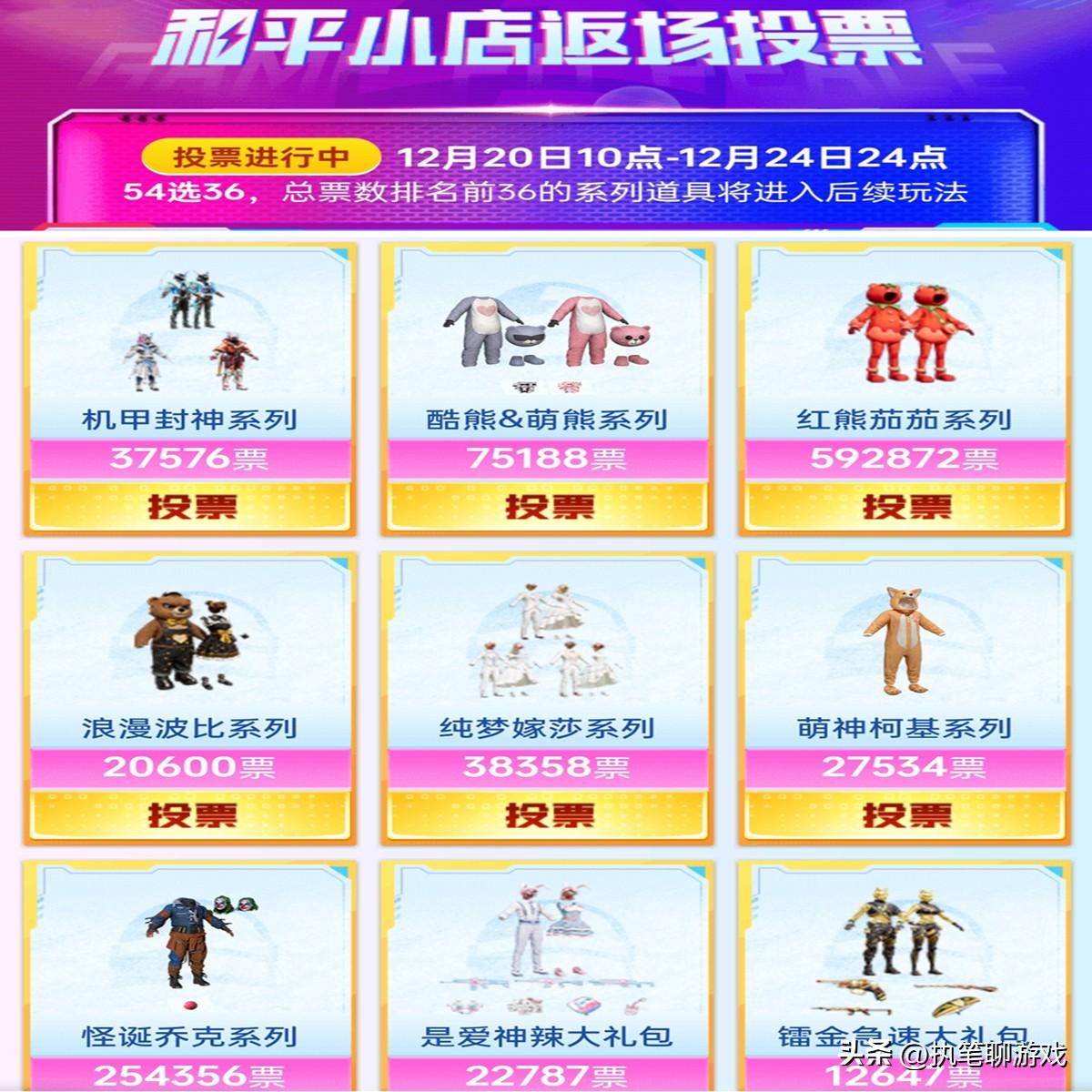 許多玩家看到“和平小店”即將在元旦開啓後就奔走相告,卻沒有仔細瞭解規則,只知道此次光子拿出54個不同的經典系列,通過人氣票選的方式選出前36名。
