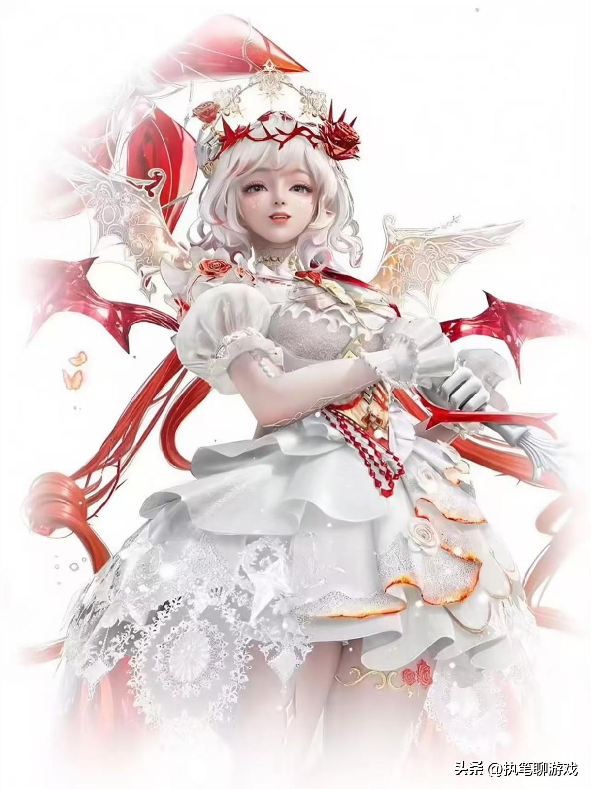 如圖所示,從這張“原畫”的表現來看,天哥覺得如果滿分是10分,完全可以打到9分,甚至是9分以上,類似吸血鬼女王的“小虎牙”,紅色的惡魔小翅膀(可愛版),再加上白色的婚紗晚禮服,看起來可以說是又萌又可愛。