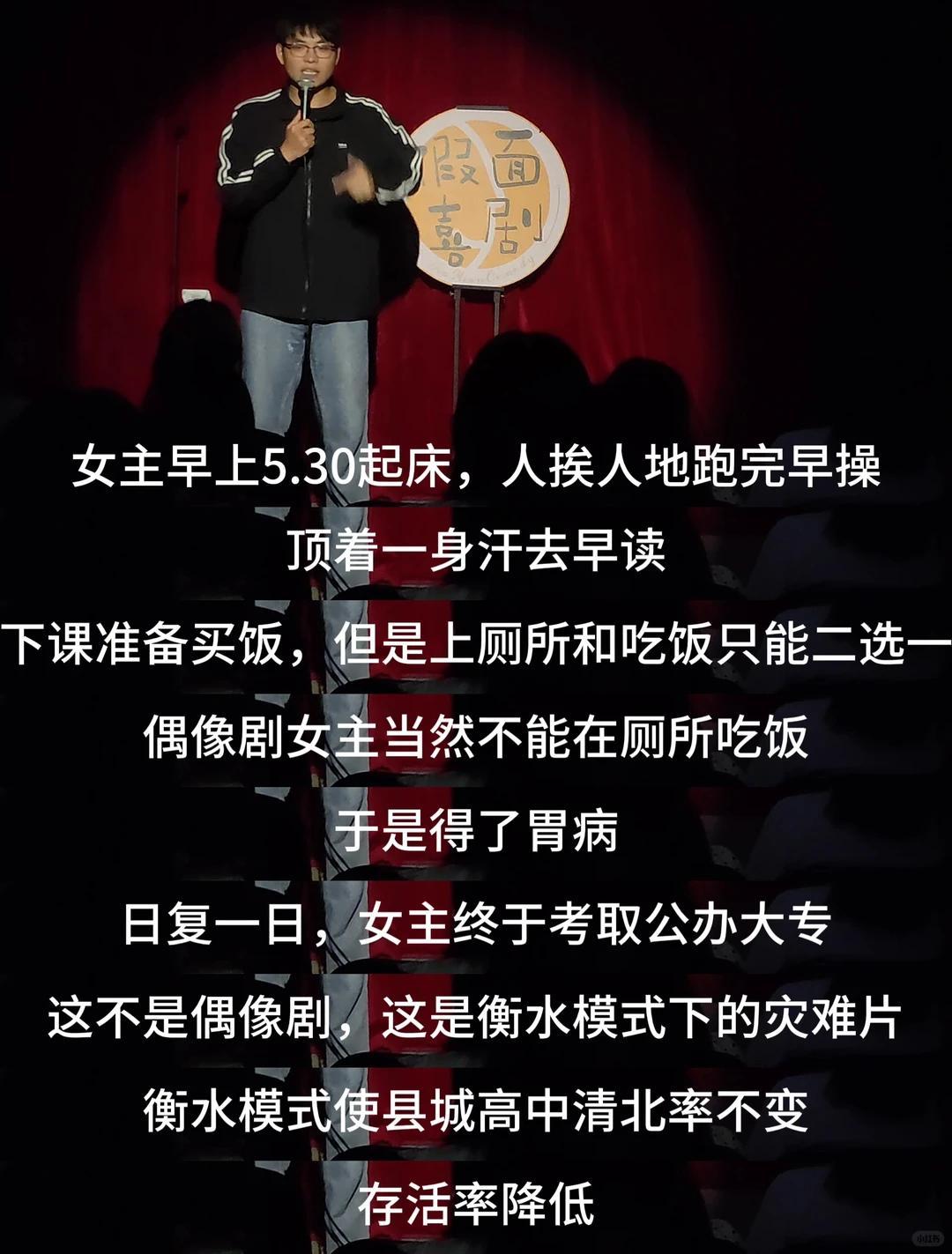 至於衡水模式,作爲應試教育前序版本的集大成者,借它的噱頭並不僅僅是在諷刺這所學校,更是影射整個社會的教育問題——高壓的軍事化管理與嚴令禁止的各項條例。似乎一直在將原本有棱有角的靈魂磨成格式化的、圓滑的。