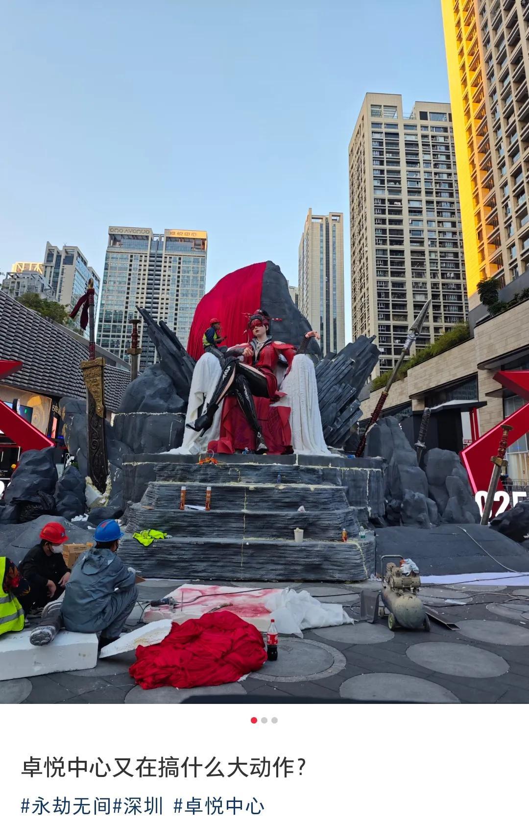 想打卡?《永劫無間》直接包下了卓悅中心的露天廣場,邀請全體粉絲參與“劫日派對”嘉年華。場地正中間,提前幾天豎起來的超大寧紅夜雕像,一度讓路過的市民都在打聽這到底是要辦什麼大活動;