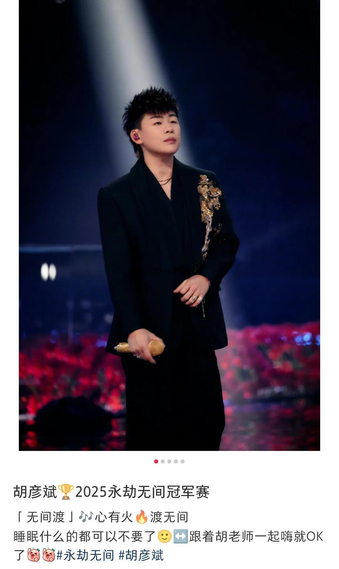 第二天的三排賽同樣精彩。胡彥斌先後獻唱《你要的全拿走》《敬自己 不爲誰》爲選手助威。特別是當《永劫無間》與《盜墓筆記》的聯動主題曲《無間渡》響起時,高亢的嗩吶聲瞬間把場子熱了起來。