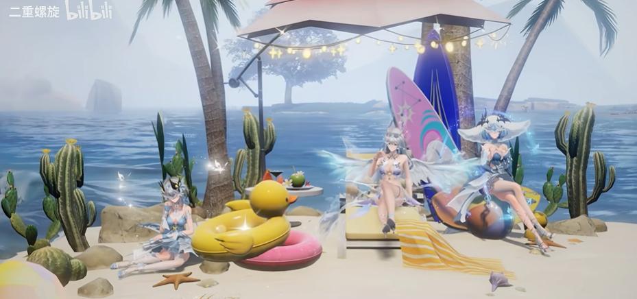 1.1版本中推出的新角色的新泳裝皮膚,在審美上收穫了玩家的一致認可。搭配泳衣,官方還增加了許多配套的外觀動作皮膚,比如鯊魚槍皮,小黃鴨足跡特效,沙灘風格的下落攻擊特效,以及衝浪形態的螺旋飛躍特效等。