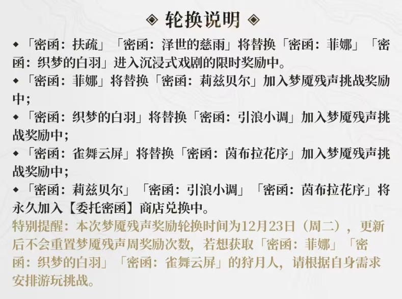 但理論上,所有角色最終都會進入常駐商店,大致遵循“【沉浸式戲劇】進入【周本】,【周本】進入【常駐商店】”的輪換過程。1.1版本的強勢角色“扶疏”就是當前【沉浸式戲劇】中的角色,同時也是該版本擁有限定皮膚的熱門角色。