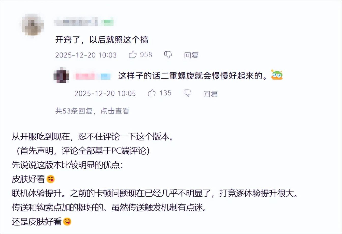 儘管前瞻中承諾的優化內容已部分落地,但此次版本更新,讓不少玩家感到壓力更大。《二重螺旋》無疑正處於一個比較艱難的階段。其“二次元+刷寶遊戲”的特殊賽道定位,以及此前宣傳和積累的影響力,讓它吸引了遠超常規的關注。關注越多,引發的爭議與討論也愈發激烈。