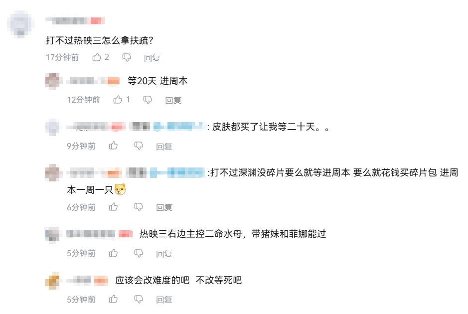 這樣的設置,給想要在當期獲得“扶疏”的玩家設立了較高的門檻。衝着角色入坑的新玩家由於缺乏前期積累,想通過“刷”獲取當期角色變得異常困難。要麼投入大量時間爆肝提升實力,要麼只能等待角色在未來版本進入難度更低的周本或商店。這也意味着,新玩家很難在當前版本中體驗到版本核心內容。