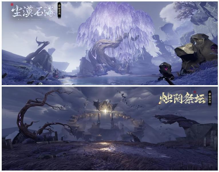 同時,新增了大型地圖“華胥”。這個場景的渲染風格更偏寫實,擁有豐富的地貌和奇觀。該地圖會比公測版本的冰湖城區域大很多,且在美術質量明顯提升,材質細節,光影表現上都採用了更加細膩的處理方式。